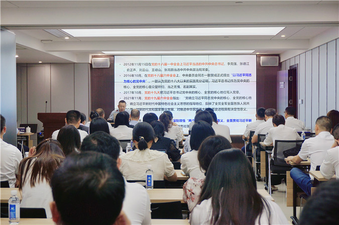 2023年6月15日上午,外经所党总支部与农业银行海口南航支行党委、海南产权交易所党委、新疆驻琼工作组党委、海南省房地产业协会党支部等五家党组织在景瑞大厦A座9楼多功能会议室联合开展“联学细悟二十大,笃行奋进新时代”主题党日活动,共同邀请省委党校法学教研部主任程良波教授为参会的党员作专题宣讲报告。外经所党总支书记童永滨主持活动,农行南航支行党委党委、副行长钟剑强,海南产权交易所党委书记、总经理陈熔炼,新疆驻琼工作组党委副书记、副组长许宏宾,房地产协会书记李青娥,海南省律师行业党委委员、外经所主任吴军及五个党组织党员共80余人参加活动。